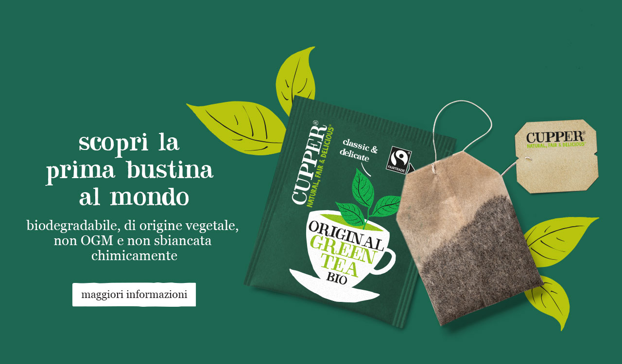 Qui da CUPPER crediamo che ogni tazza di tè sia importante. Grazie a ogni tazza che bevi, siamo in grado di continuare a fare del bene per sostenere il pianeta e i suoi abitanti. Ecco perché tutti i nostri prodotti sono realizzati con ingredienti puri e naturali.