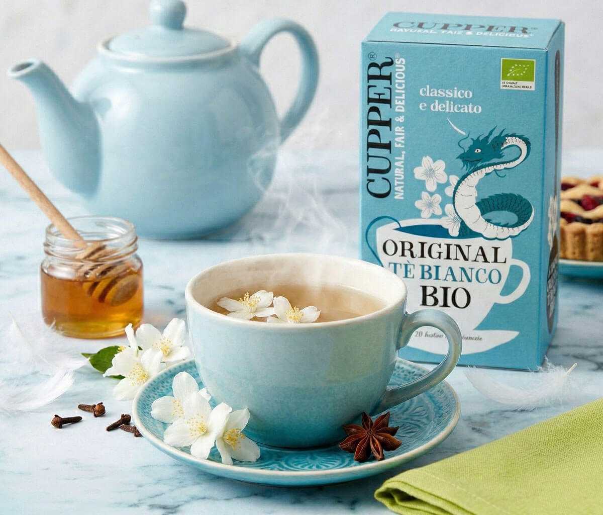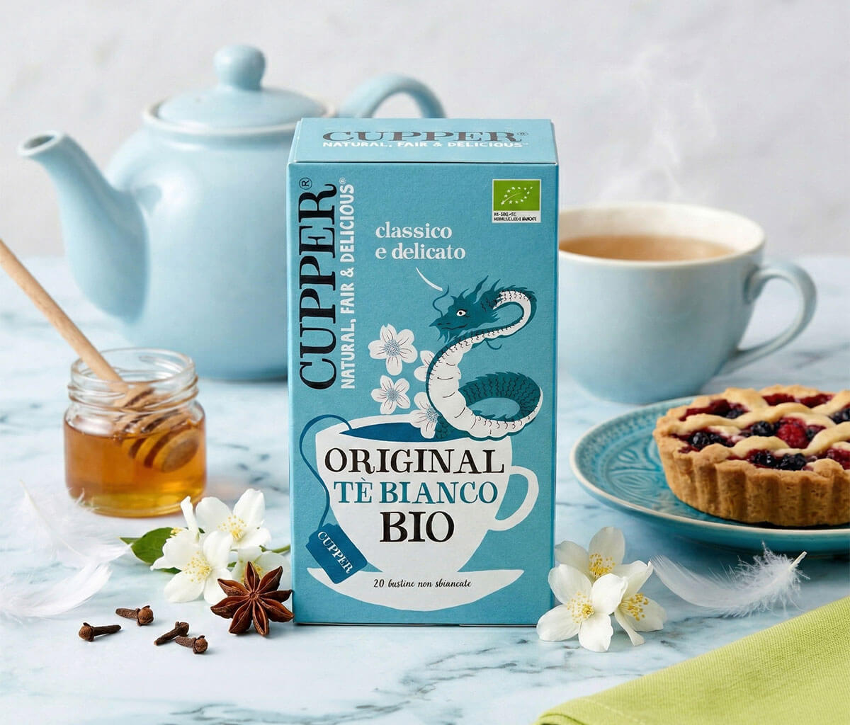 Il tè bianco ha un sapore molto raffinato, tenue, ma deliziosamente avvolgente. È tradizionalmente originario della Cina, come testimonia l’adorabile drago sulle nostre confezioni. I giovani boccioli delle foglie vengono delicatamente ossidati per creare una tazza di tè salubre e limpida, che costituisce una potente fonte di antiossidanti naturali.