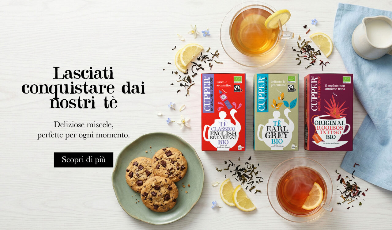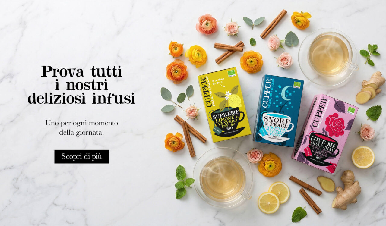 Qui da CUPPER crediamo che ogni tazza di tè sia importante. Grazie a ogni tazza che bevi, siamo in grado di continuare a fare del bene per sostenere il pianeta e i suoi abitanti. Ecco perché tutti i nostri prodotti sono realizzati con ingredienti puri e naturali.