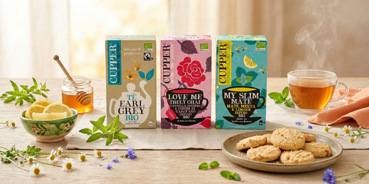 Le nostre bustine di tè sono vendute in pacchetti; questo per mantenerle fresche, per proteggerle e per mantenerne il gusto speciale. Se sono incartate, gli ingredienti sono protetti da fattori esterni come la luce del sole e l’umidità, permettendo così ai sapori di rimanere inalterati. È anche utile se si trovano in una credenza piena di tè, perché mantengono il loro fantastico sapore all’interno e gli aromi degli altri infusi all’esterno! Sappiamo anche che sempre più persone vogliono portare con sé il loro tè preferito quando escono o vanno al lavoro; lo mettono in borsetta o lo tengono in valigia, così, dando alla bustina un involucro tutto suo, i nostri consumatori possono gustare il perfetto tè Cupper anche in giro per il mondo.